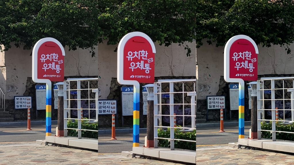 다만 지금 보시는 입간판이 양각이라 그림자가 살짝 보여야 하는데 다이나믹 레인지가 조금 좁은 건지 입체감이 다른 스마트폰에 비해 살짝 부족하다는 느낌도 받을 수 있습니다.
