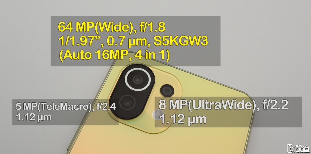 메인인 광각 카메라는 최대 64MP, 삼성의 GW3 센서를 사용했다고 하는데요.