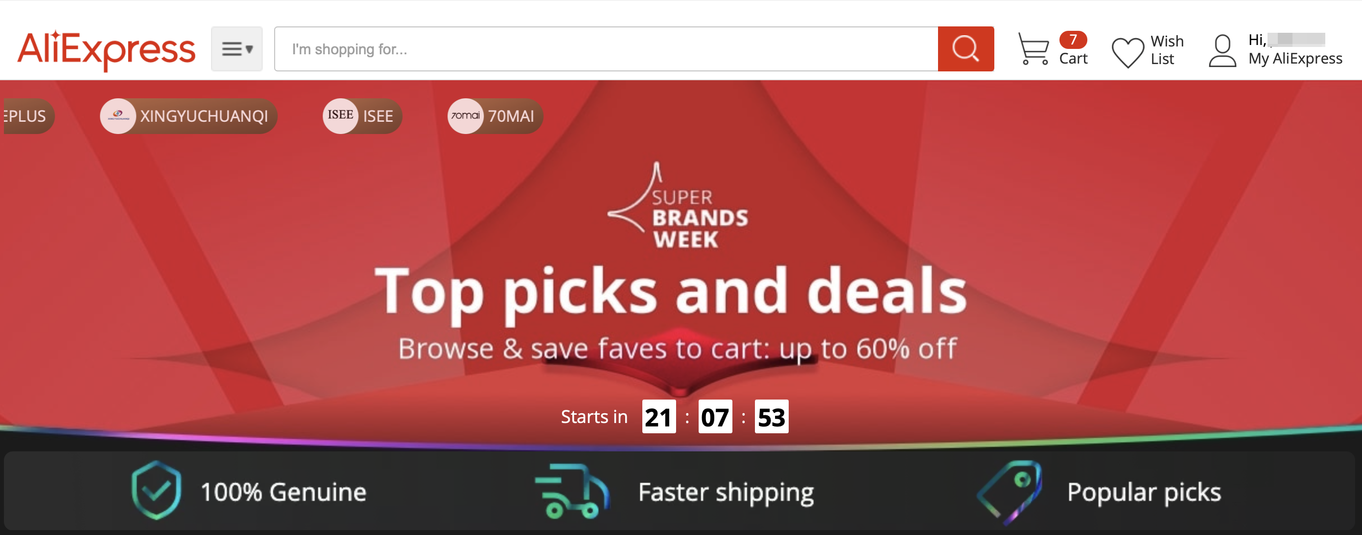 이번 세일은 알리 익스프레스 입점 브랜드 중 잘 나가는 브랜드만 모아서 할인해준다는 알리익스프레스 슈퍼 브랜드 위크!