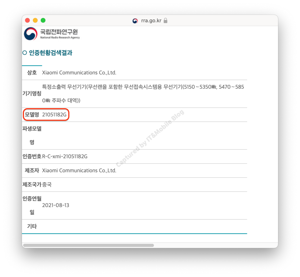 모델명은 미 패드 5의 글로벌 모델명인 21051182G, 스냅드래곤 860을 탑재한 일반 모델입니다. 우리나라뿐만이 아니라 유럽과 미국 등 해외에서도 7월 중 인증을 마친 걸로 확인이 되고 있는데요.