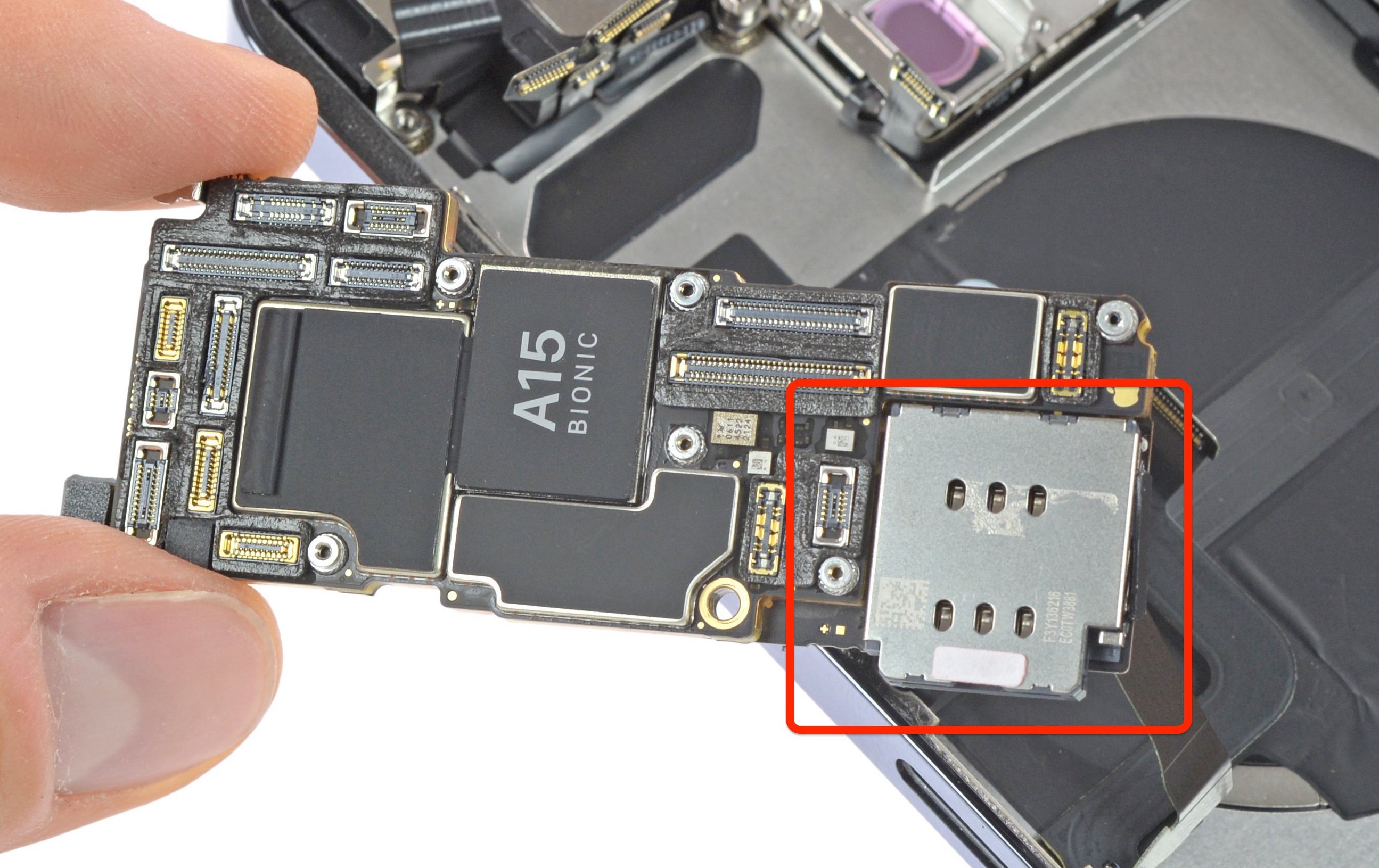 바로 아이폰 12 프로 맥스와 아이폰 12 프로까지도 개별 모듈로 존재하던 심 슬롯(Sim Reader)이 로직보드에 일체형으로 탑재가 되면서 더 이상 물리 듀얼심으로의 개조는 힘들어질 걸로 보입니다.
