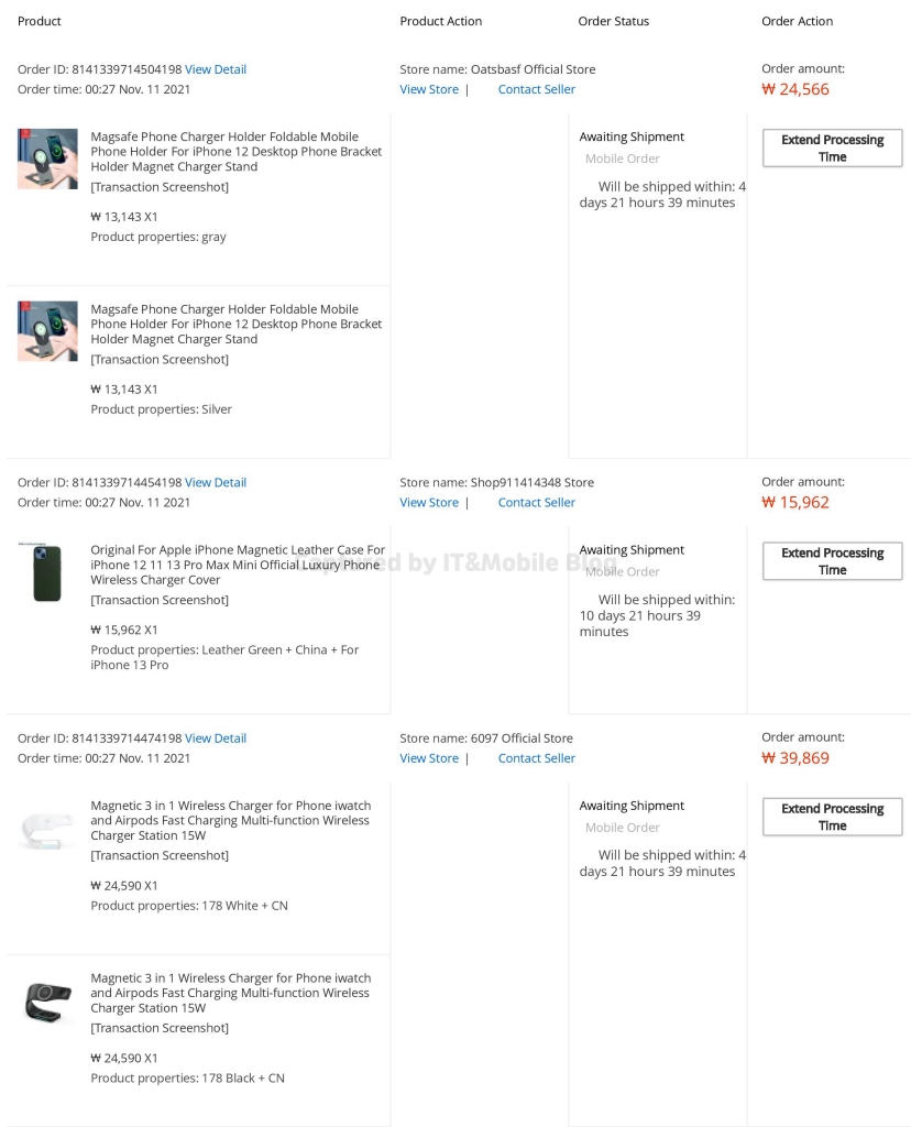 아이폰 13 프로에 사용할 맥세이프 충전기용 스탠드와 그나마 간섭이 적을 것 같은 3 in 1 충전기, 그리고 새롭게 출시된 그린 색상의 아이폰 13 프로용 맥세이프 지원 케이스를 구매했습니다.