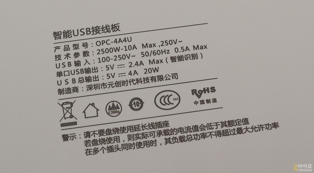 포트 4개, 분배를 하게 되면 포트당 5W(5V 1A) 정도에 불과하지만 이 멀티탭은 USB로 전원을 공급받는 IT 소품들에 최적화되어 있다고 보시면 아마 정확할 듯싶습니다.