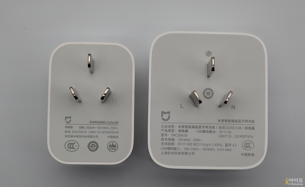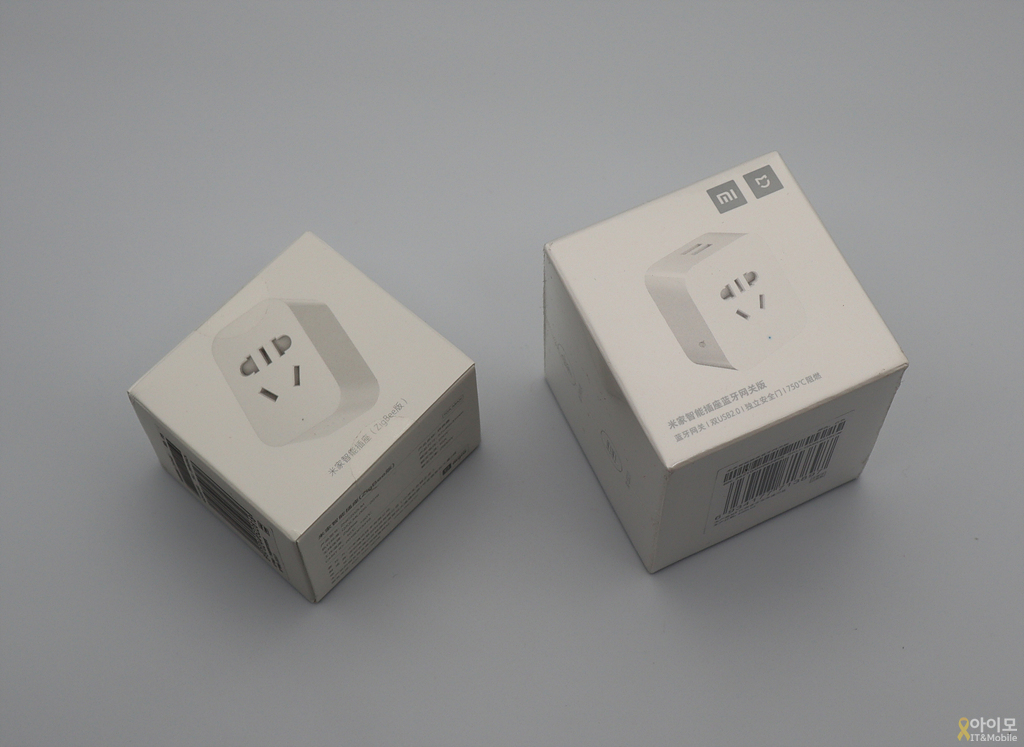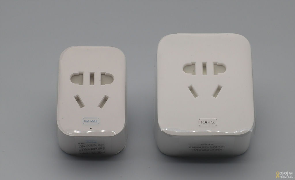 샤오미 홈 IoT가 시작될 무렵부터 출시된 ZigBee버전(좌)과 올해 출시된 신형 스마트 플러그(우), 기능과 지향점 자체가 다르다 보니 크기에서도 상당한 차이가 있는데요.