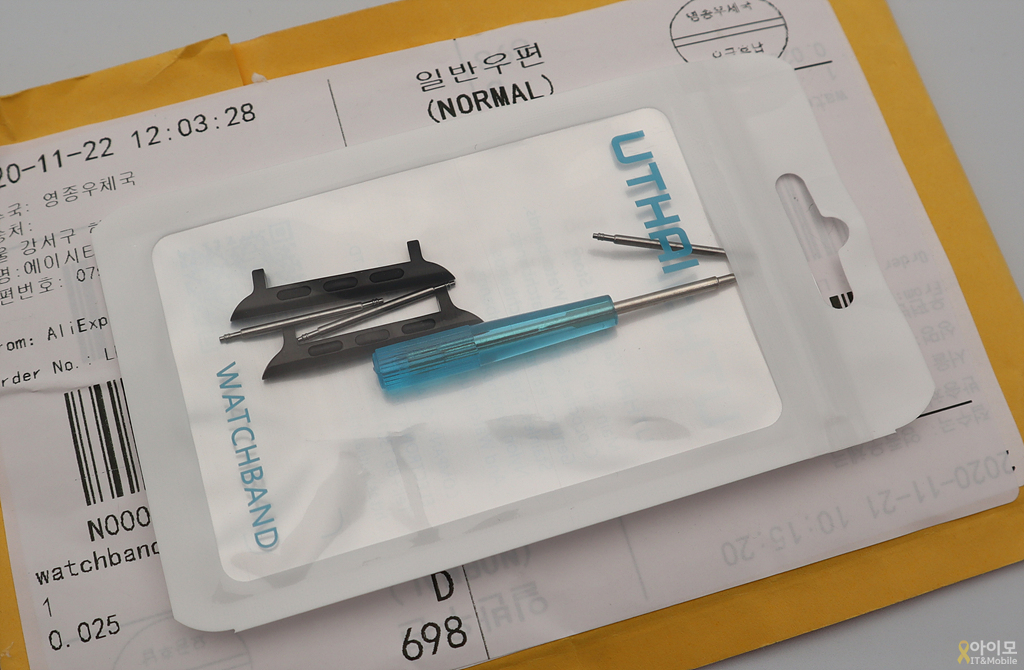 그중에서 애플 워치 6에 일반 시계 밴드를 사용하게 해주는 커넥터가 도착했습니다.