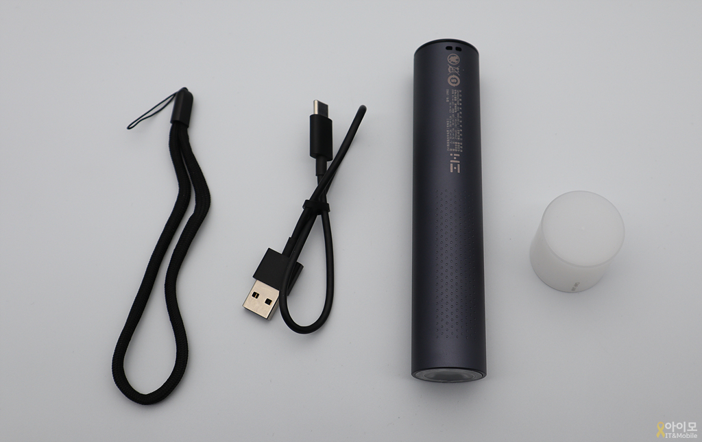길쭉한 원통형의 보조 배터리와 충전용 C to A 케이블, 스트랩과 플래시 디퓨져가 구성품의 전부입니다.