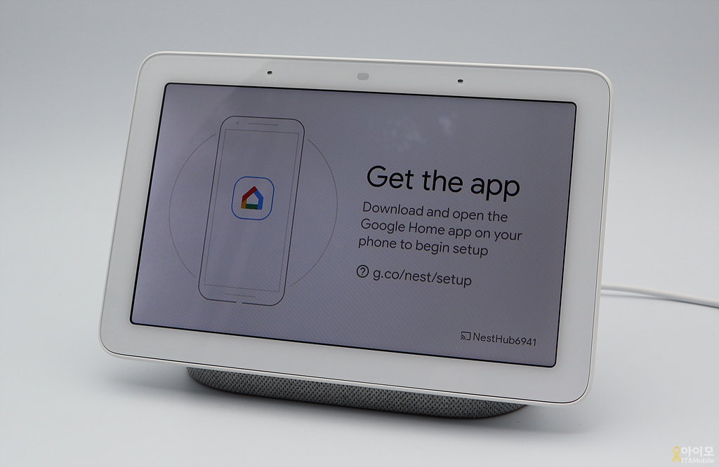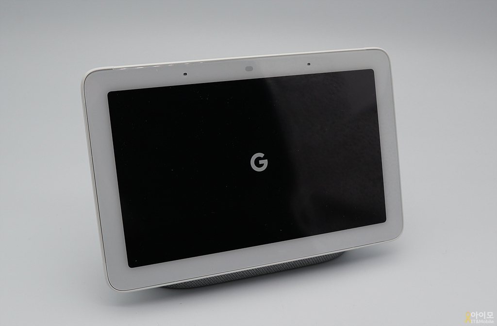 네스트 허브는 사선으로 부착된 7인치 디스플레이, 그리고 그 뒤쪽으로 스피커가 결합된 형태의 제품입니다.