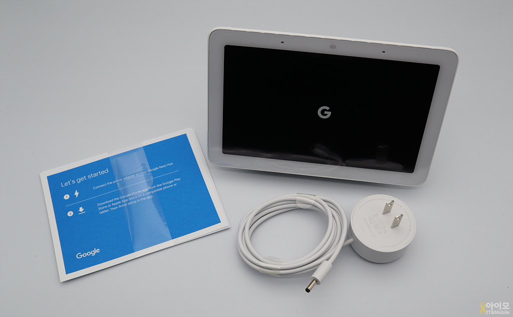 박스에는 네스트 허브 본체와 전원 어댑터, 간이 설명서 정도가 전부였지만 7인치 터치 디스플레이에 스피커가 결합된 제품이라 그런지 무게는 꽤 무겁게 느껴지더군요!