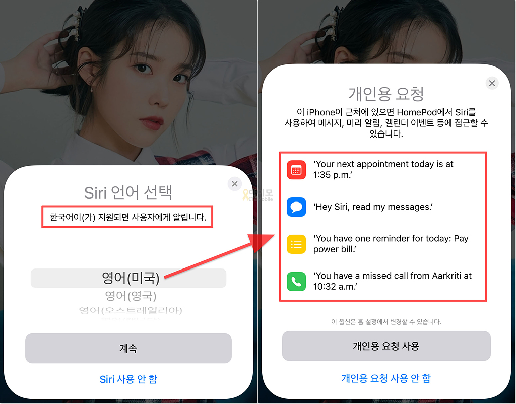 설정 과정은 아이폰 언어 설정 때문에라도 한국어로 진행이 되지만 홈팟 미니에는 언제나 듣던 어리숙한 시리 양이 아닌 조금 시니컬한 미국 시리 언니가 들어있는 것 같더군요. ㅡ.ㅡㅋ