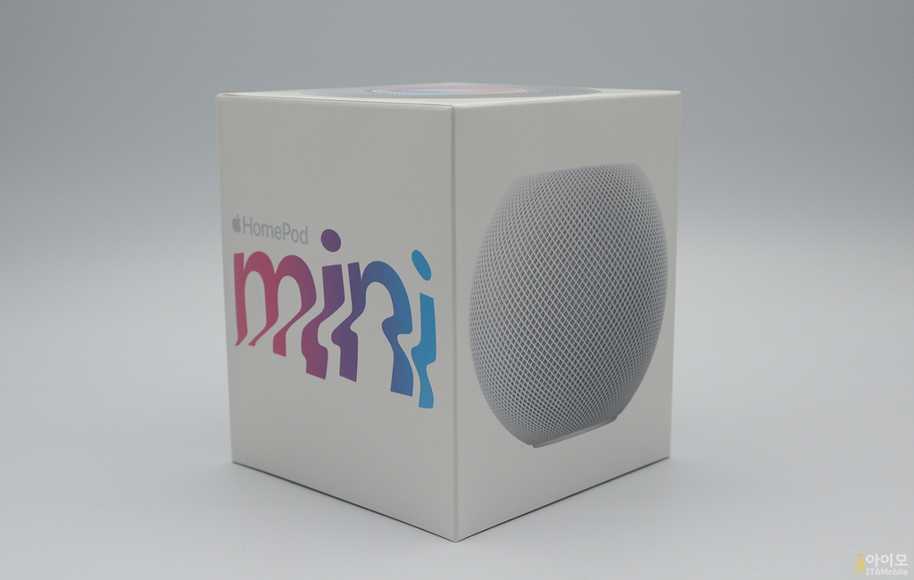 조금 길쭉한 직사각형 큐브 모양의 애플 홈팟 미니 박스!
