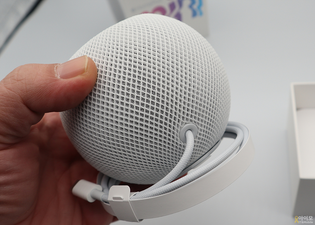 약 1.5m 정도 되는 패브릭 재질의 USB-C 전원 케이블은 홈팟 미니와 일체형으로 분리가 되지 않는다는 점은 조금 아쉬운 디자인이 아닌가 싶습니다.