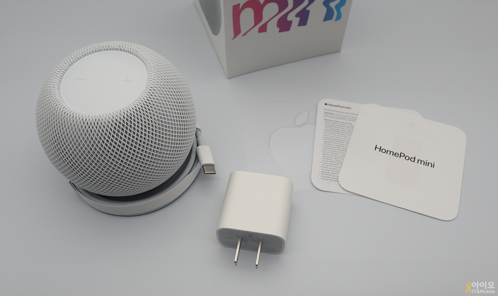 환경 보호를 위해 아이폰에서는 전원 어댑터를 빼버린 애플이지만 홈팟 미니에는 20W USB-C 어댑터가 포함이 되어있었구요.