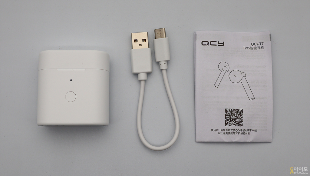 구성품은 TWS 이어버드가 포함된 충전 케이스, 그리고 USB-C 케이블과 중문 설명서 정도였습니다.