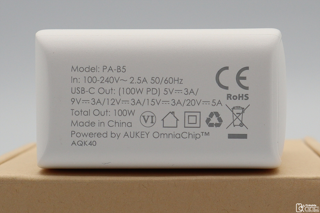 AUKEY GaN 100W PD 충전기의 모델명은 PA-B5, 100W 고출력 충전기이지만 USB-C 포트 하나와 LED 하나 정도가 전부이구요.