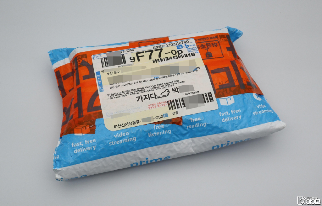 두근두근 박스를 열어보니 다행히도 제가 주문한 SSD가 곱게 들어있습니다. 아마 아마존 에어캡 비닐 포장으로는 SSD가 파손이 될 수도 있겠다 싶어 가지다에서 보완을 해주신 거겠죠.