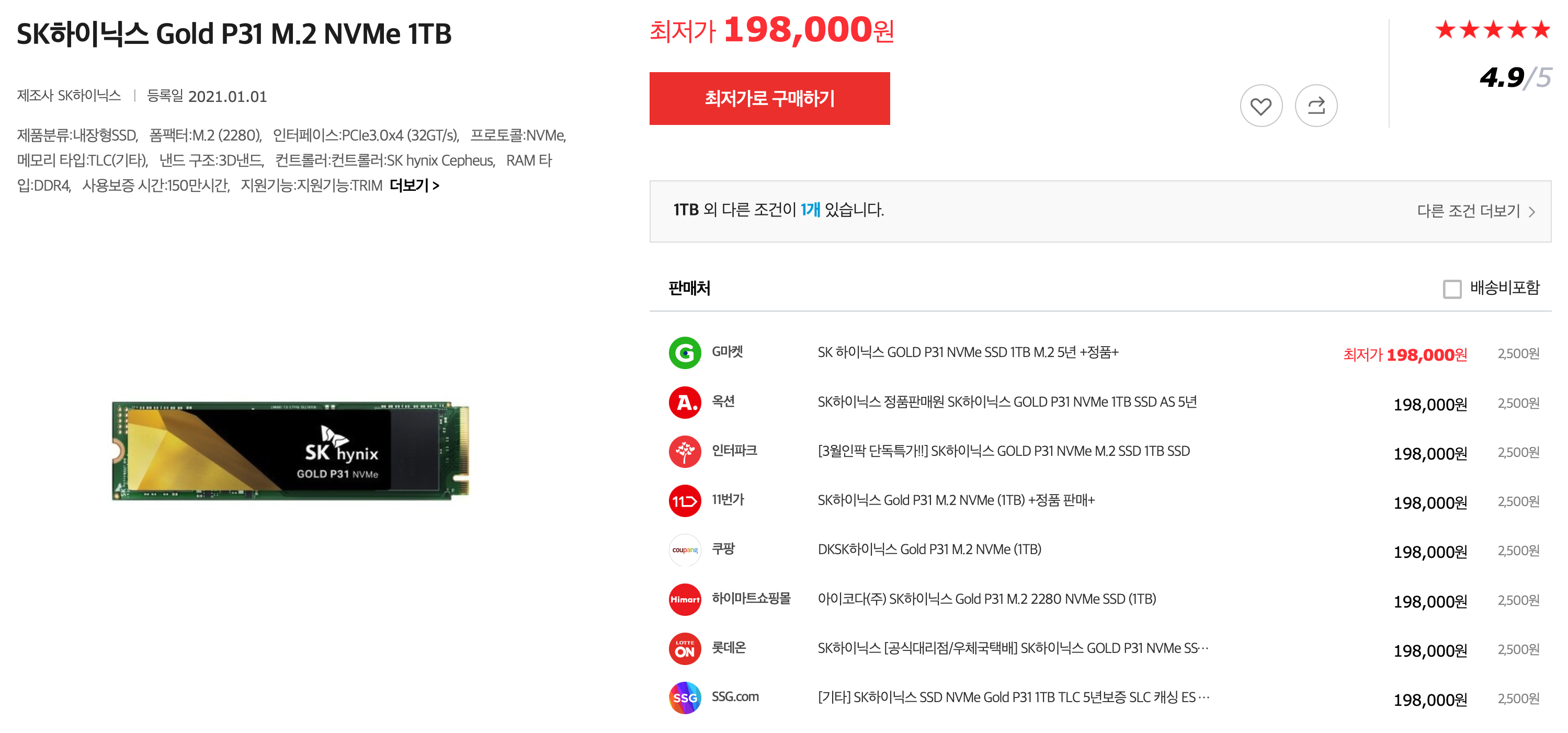 작년 해외 직구족들은 하나 정도는 구매했다는 SK Hynix Gold P31 M.2 NVMe 1TB!