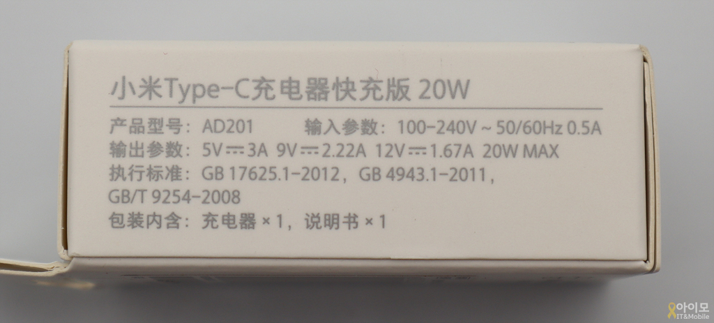 샤오미 20W 충전기는 최대 12V 1.67A, 20W의 출력을 가진 충전기이구요.
